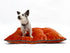 - PETITE Tangerine Pet Pouf is 17" x 23"
